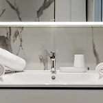سيستمتع الزوار براحة الحمام المزود بالنشَّافة والمناشف والشباشب في هذه الشقة. علاوة على ذلك، هناك المرحاض المنفصل والدوش.